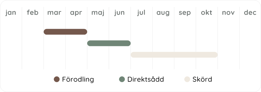 I södra delarna kan du så broccoli direkt på växtplatsen men annars är det bäst att förodla inomhus, runt 6-8 veckor innan sista frosten kan vara lagom. Du kan så inomhus i fuktig såjord i brätte eller krukor. Täck sådden med genomskinlig plast med lufthål och håll fuktigt under groning. Bäst är att vattna underifrån, genom att vattna på bricka eller tråg, gärna med en underbevattningsmatta. Broccoli gror bäst vid cirka 20 grader. När plantorna kikat upp, kan du ställa dem ljust och svalare och tar bort plasten. Skola om till en större kruka när plantan är stor nog att hantera. Då passar du också på att ge plantan mer näringsrik jord genom att plantera i planteringsjord. Var försiktig och håll i bladen och inte stjälken. Broccoli kan behöva omskolas en eller två gånger, i större krukor med planteringsjord. När risken för frost är över – avhärda plantorna så de vänjer sig vid utelivet. Du kan ställa ut dem någon timme i skugga och sen öka under cirka en veckas tid innan de får komma till sin slutliga växtplats. Den tål några minusgrader.