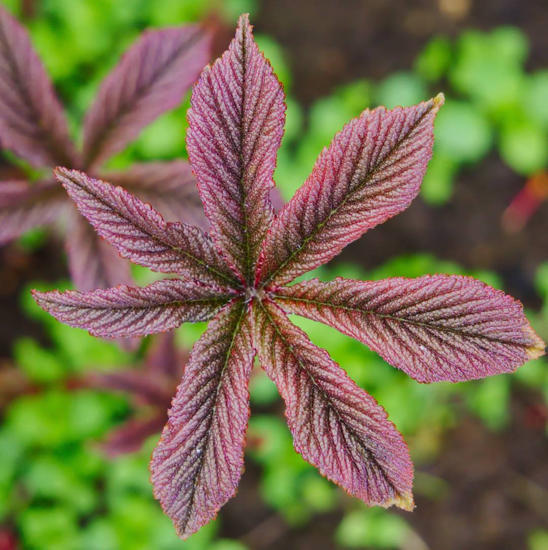 Fingerrodgersian 'Chocolate Wings' är en läcker perenn som odlas främst för det vackra chokladfärgade bladverket. Blommorna är rosa och sitter samlade på vippor. Fin som woodlandväxt.