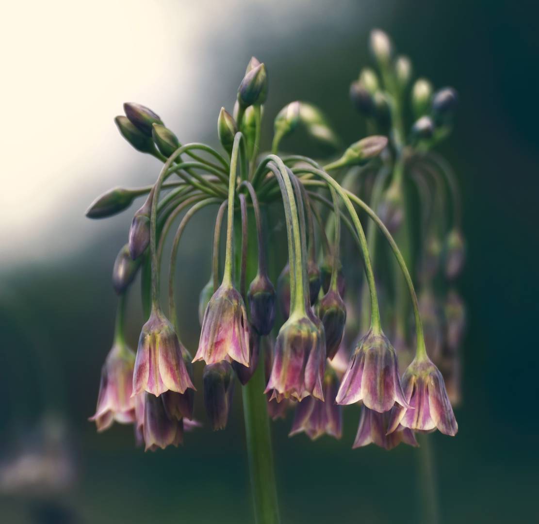 Honungslöken blommar med klocklilknande blommor som skiftar i grönt, purpur och rosa. Bladverket är grönt och dem blommar på höga stänglar. Honungslöken är också fin som snittblomma.