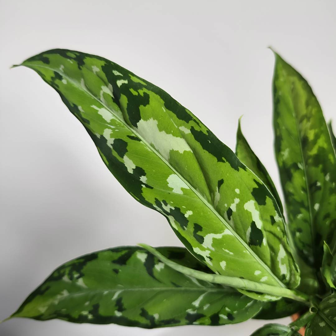 'Tricolor’ är en sällsynt och eftertraktad växt med ett spektakulärt, kamouflagemönstrat bladverk. De elliptiska bladen är djupt gröna med oregelbundna fält i ljusgrönt och silver. Växten har ett tätt, buskigt växtsätt och växer långsamt men stadigt. Ursprungligen från regnskogarna på Sumatra och odlas som krukväxt i vårt klimat.