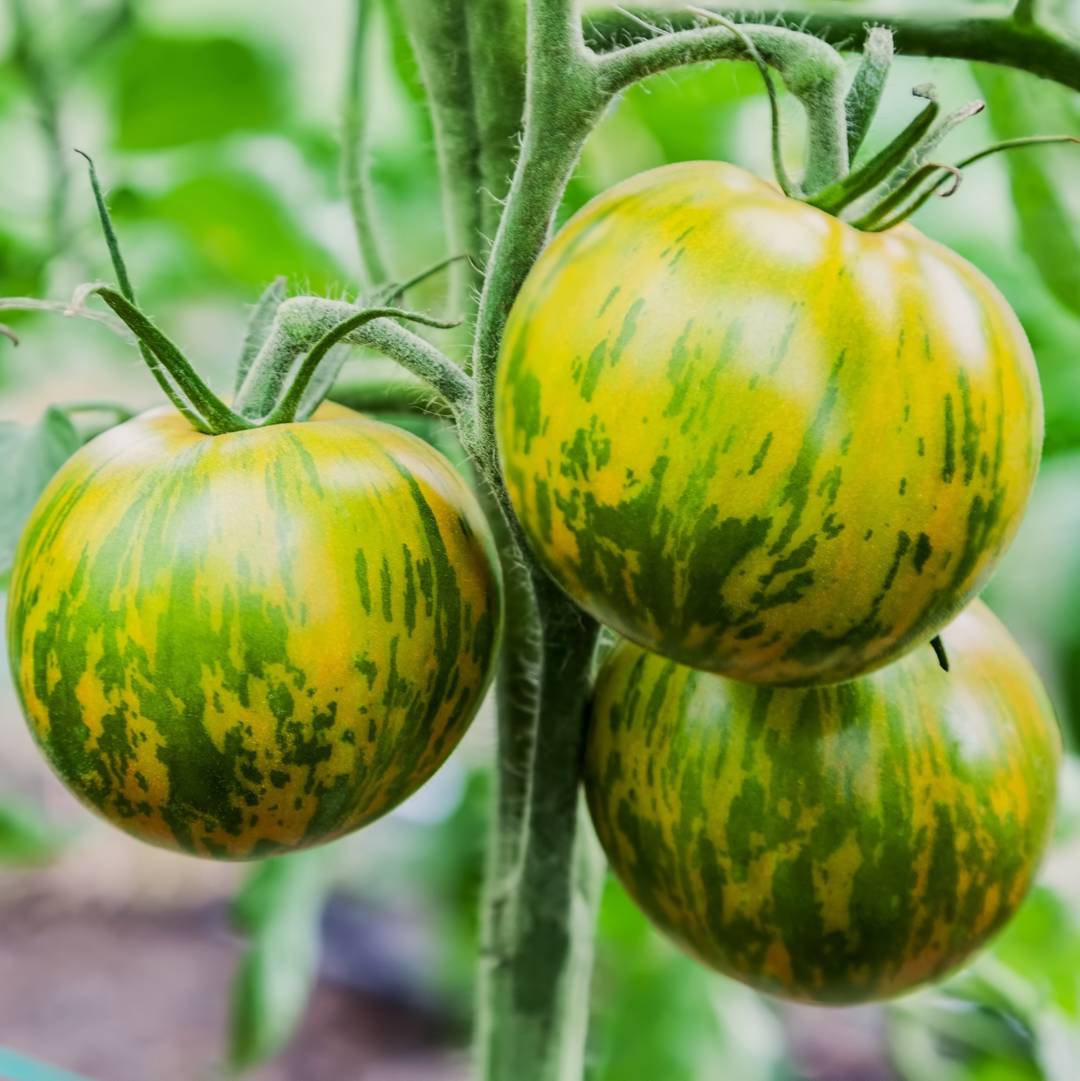 Gulgrön tomat med mörkare gröna ränder. Frukterna väger ca 80-150 gram. Plantan blir ca 1 meter hög. Den behöver stöd och tjuvning.