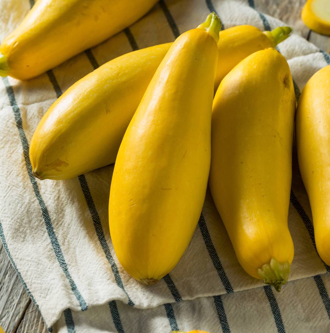 Squash som ger stor skörd av raka citrongula frukter. Frukterna kan bli uppemot 25 cm långa.