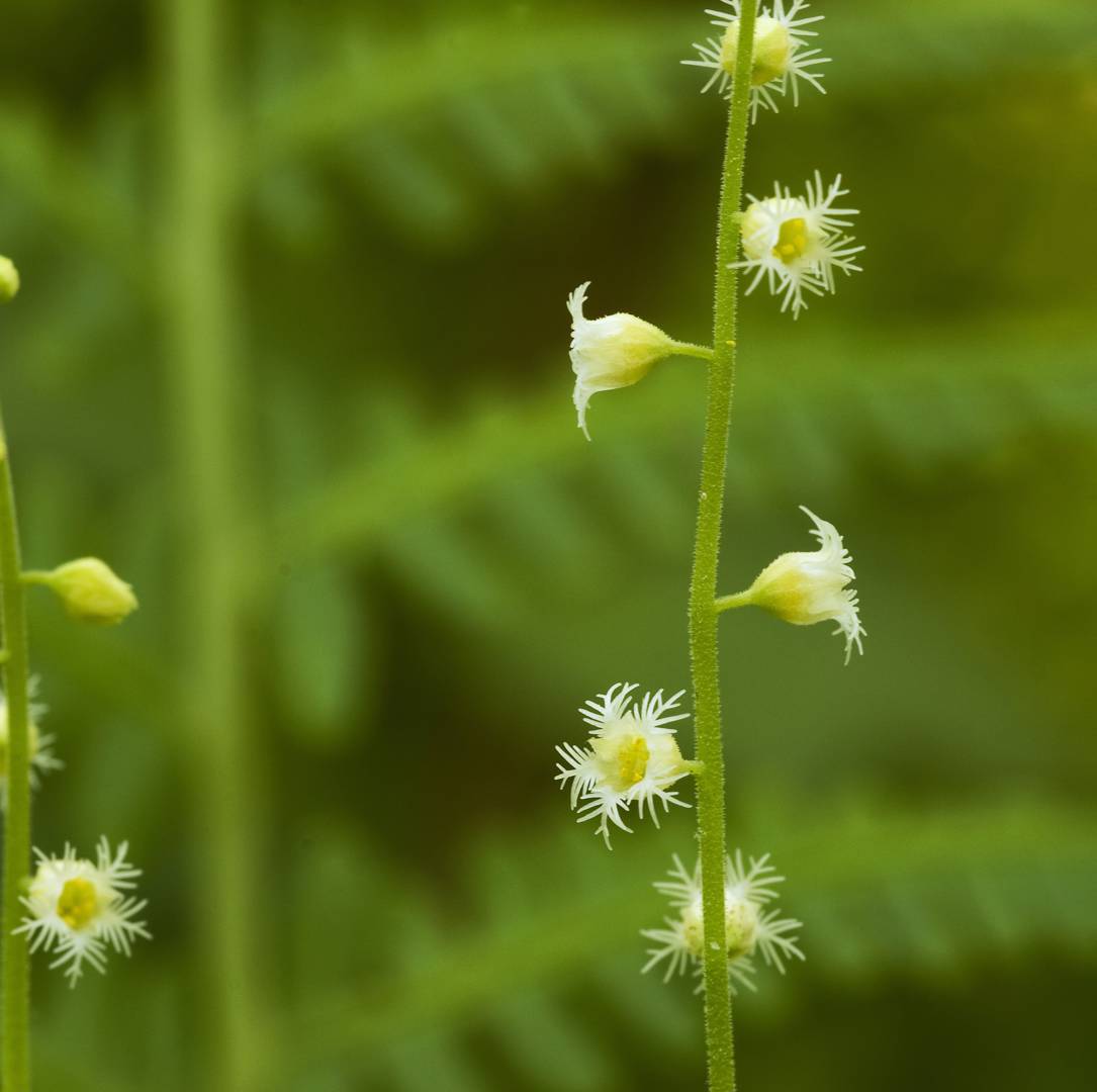 Söt perenn som blommar med små vita, fransiga blommor på tunna spiror. Bladverket är ljusgrönt med lönnliknande blad. Fin i woodland!