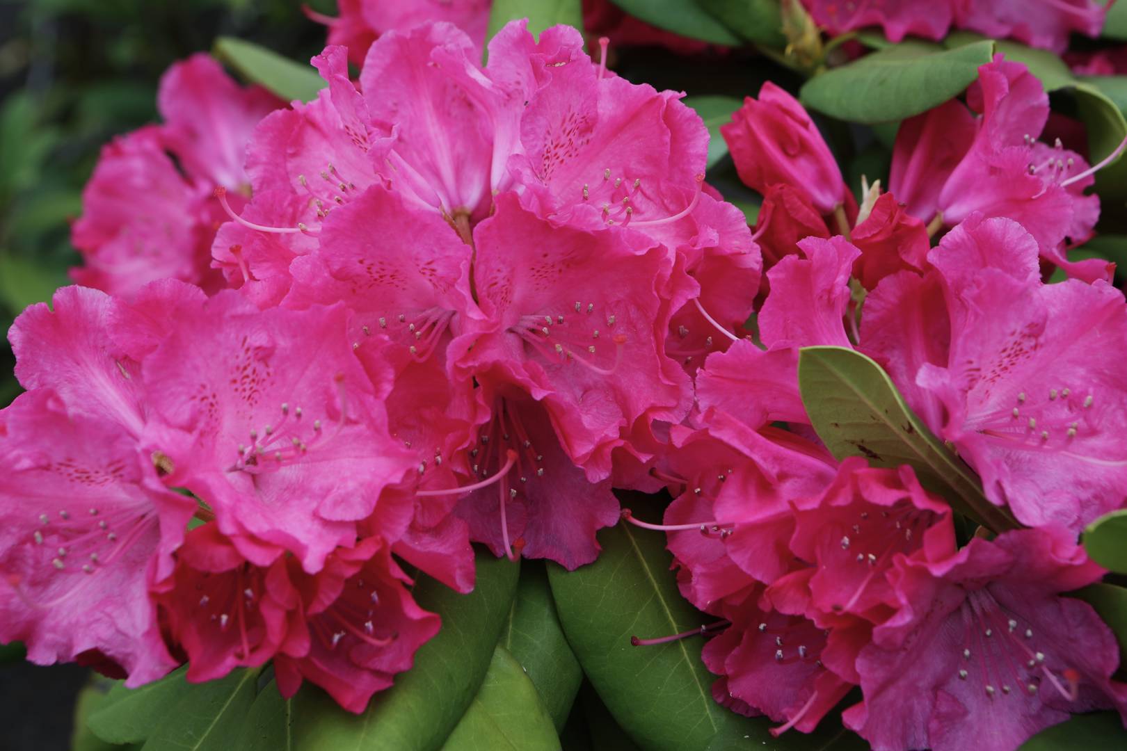Vackra japanska azalean 'Kermesinum' är en lågväxande azalea som blommar med vackra mörkt rosa blommor och mörkt grönt bladverk.