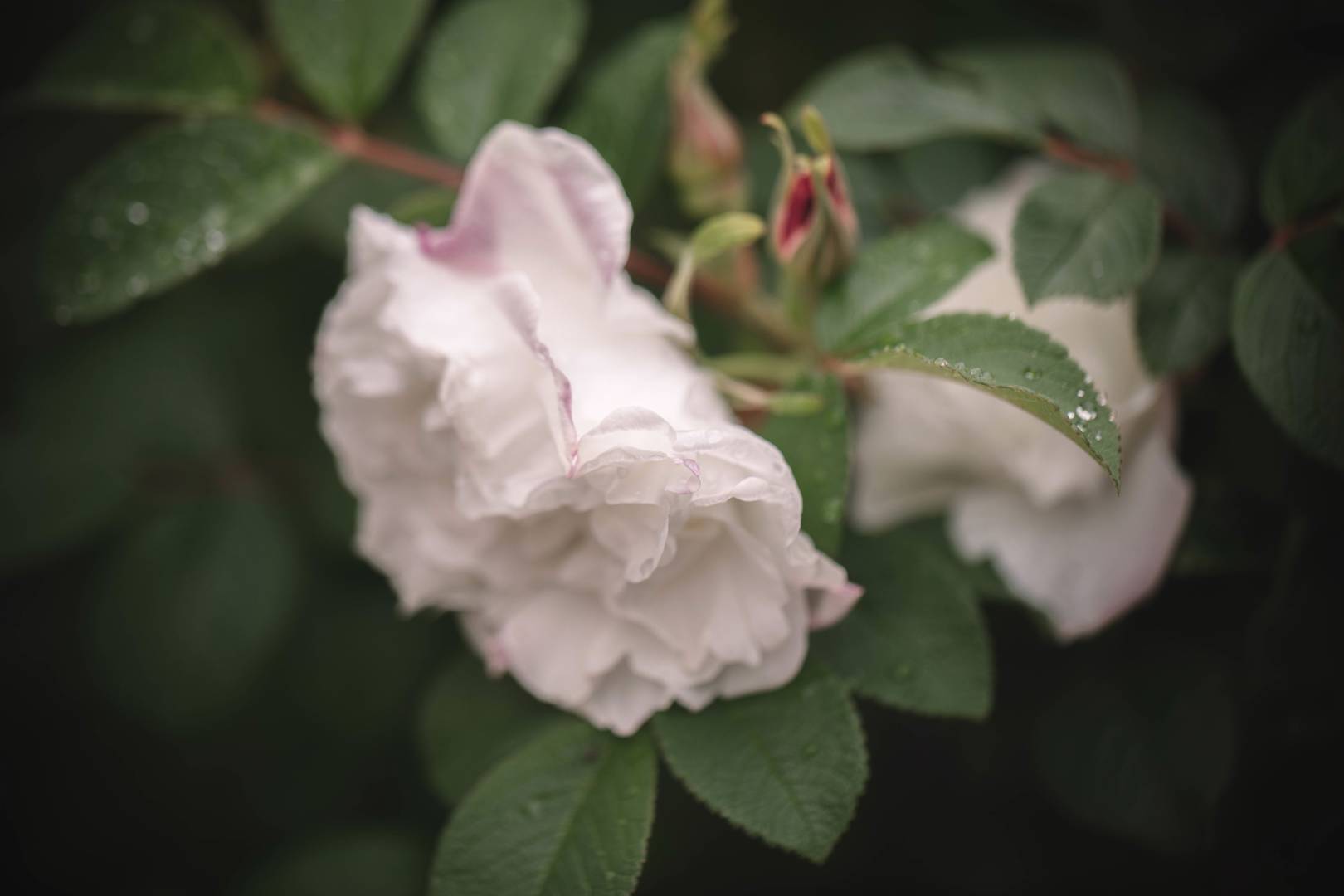 Ljuvliga 'Louise Bugnet' får rent vita, fyllda och skålformade blommor med rosa strimmor. Blommor från juni till oktober och är svagt doftand. Gammaldags buskros som växer sig tät och kompakt med tagglösa grenar.