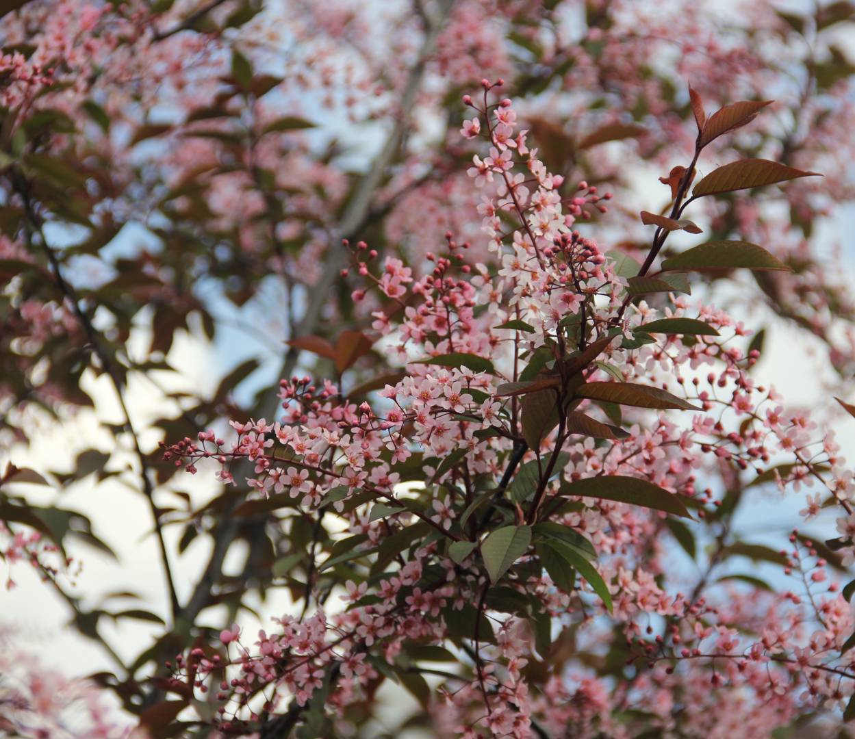 Vacker buske som blommar i maj, med rosa blommor. Bladverket är läckert purpurfärgat. Fin som buske eller litet träd.