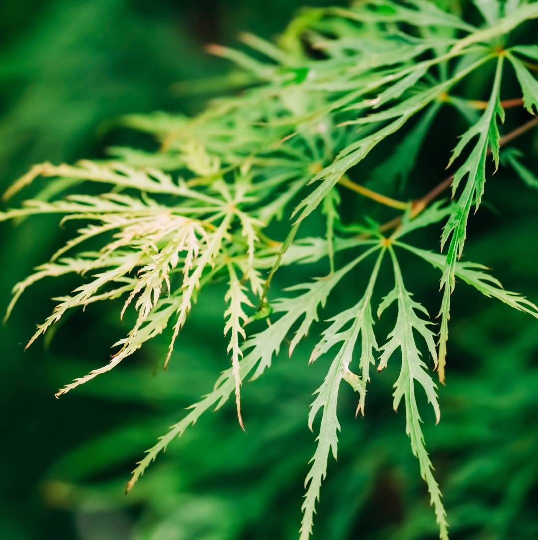 Elegant japansk lönn som breder ut sig till en liten buske. Den får vackra gröna flikiga blad som på hösten lyser röda.