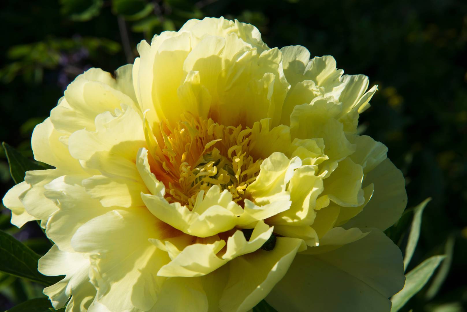 Itoh-Pionen 'Bartzella' får rikligt med vackert citrongula blommor med röd mitt. Den har ett frodigt och buskigt bladverk. Itoh-pioner är korsningar mellan buskpioner som är vedartade, och örtartade pioner. De står kvar ända fram till frosten kommer men vissnar sen ner.