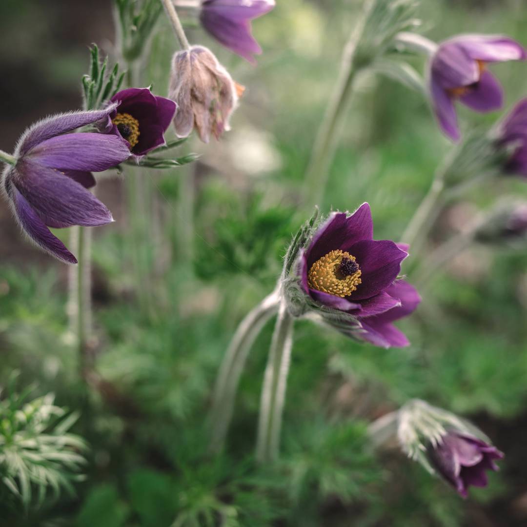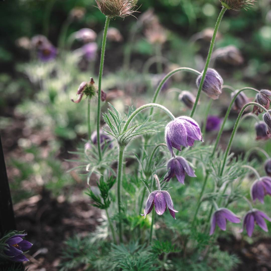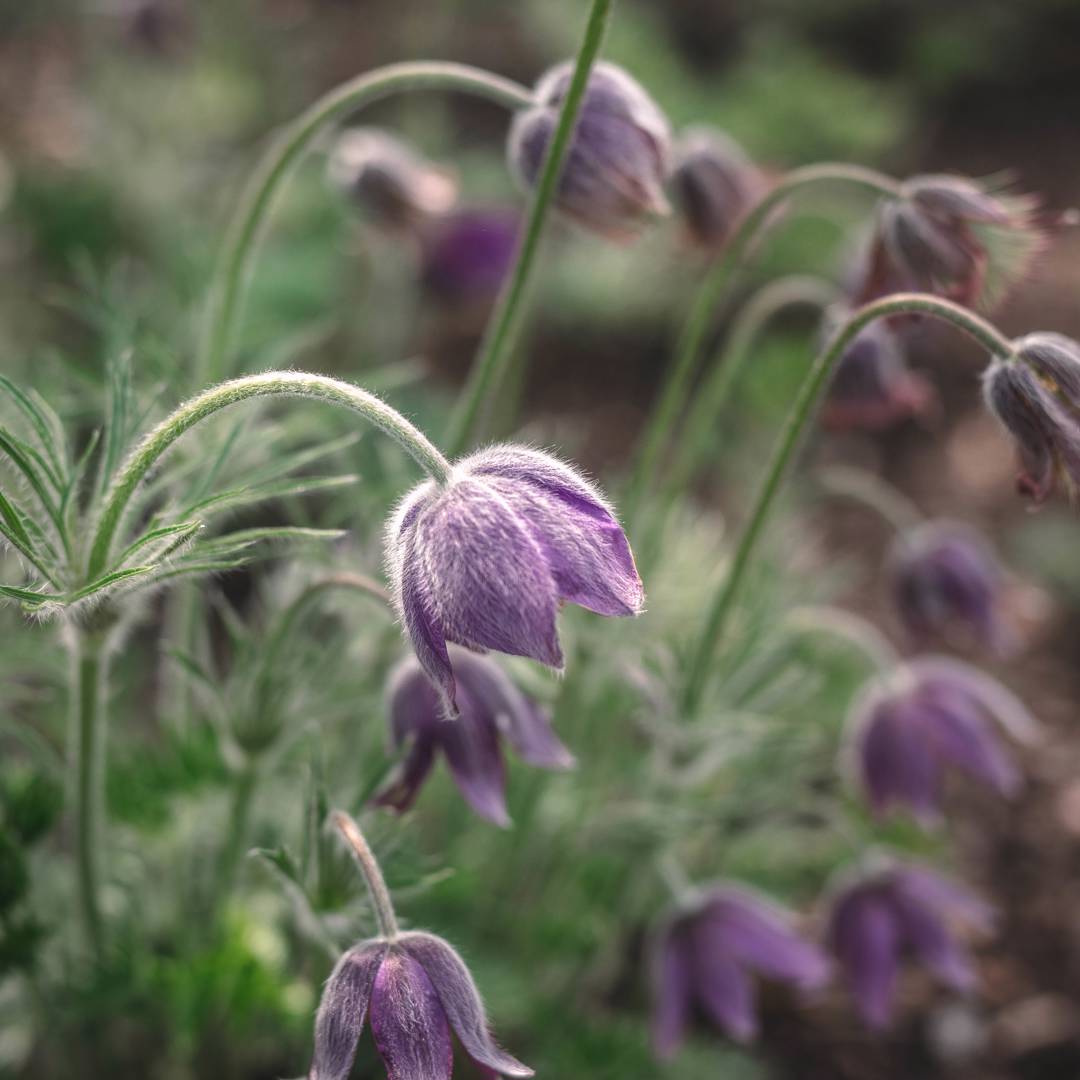 Backsippan är en klassisk vårblomma som förekommer vilt men är sällsynt och fridlyst. Blommorna är klocklika och violetta, men det finns flera underarter i olika färger. Bladverket är grönt med vit silkesluden utsida.