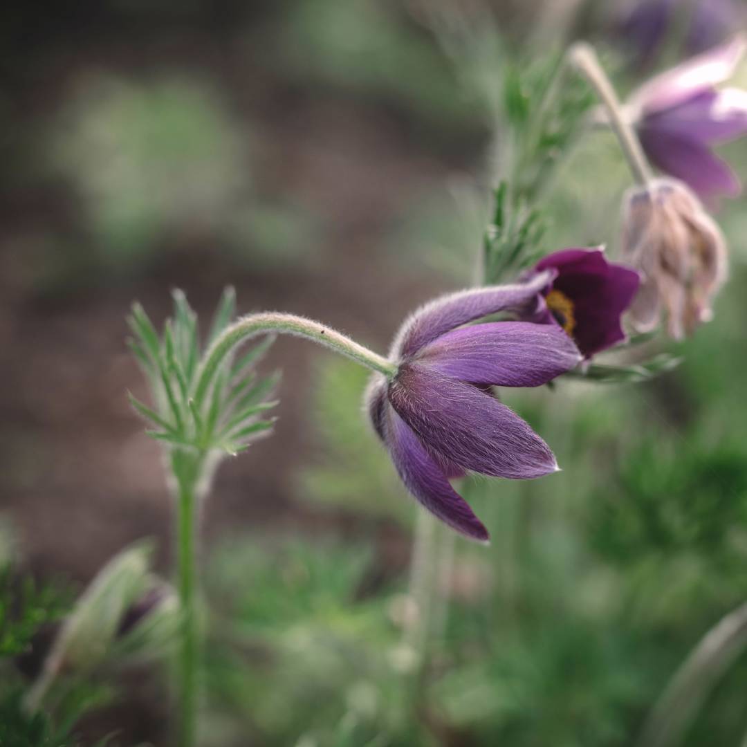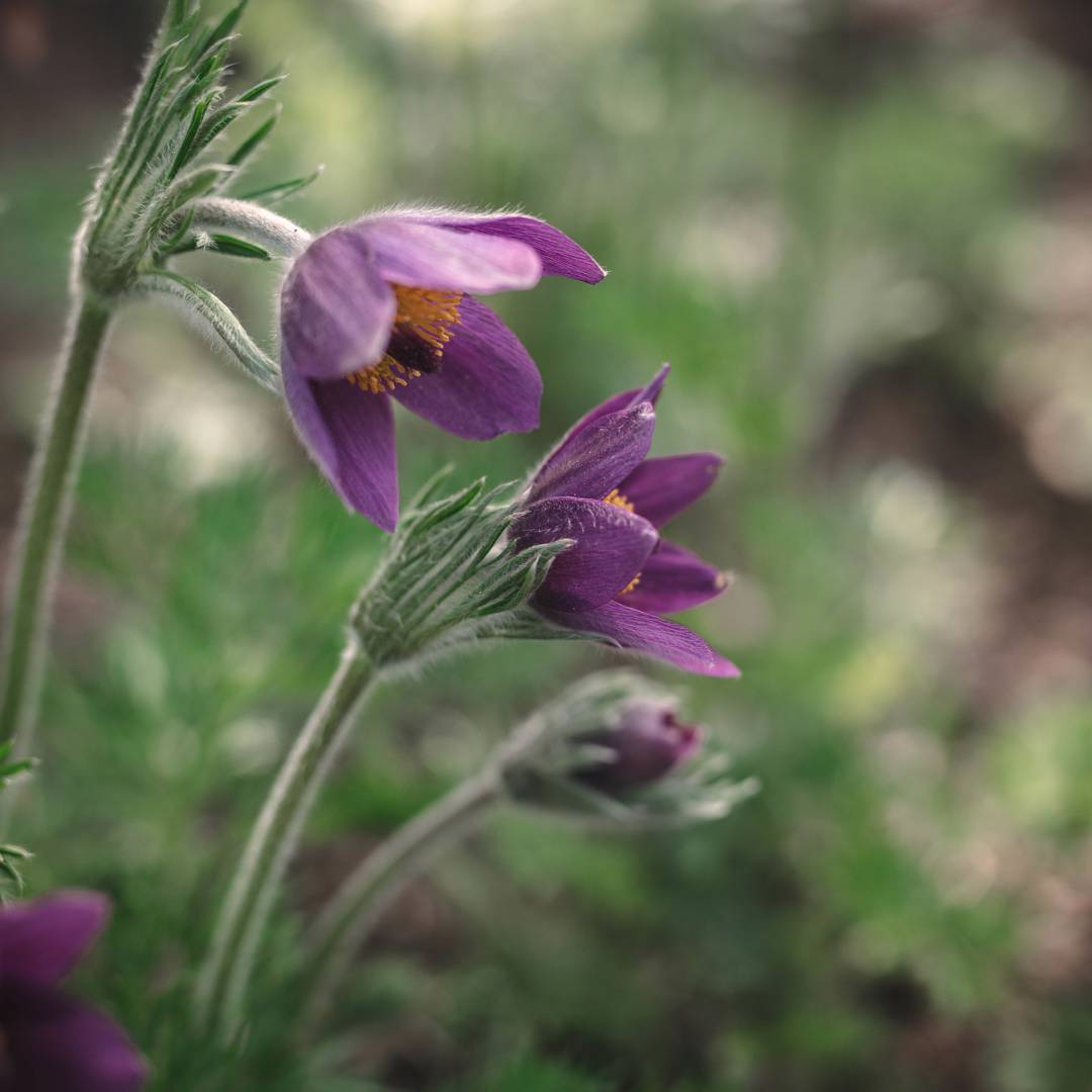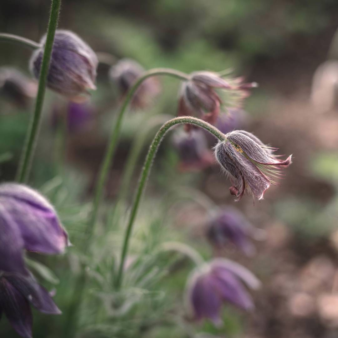 Backsippan är en klassisk vårblomma som förekommer vilt men är sällsynt och fridlyst. Blommorna är klocklika och violetta, men det finns flera underarter i olika färger. Bladverket är grönt med vit silkesluden utsida.
