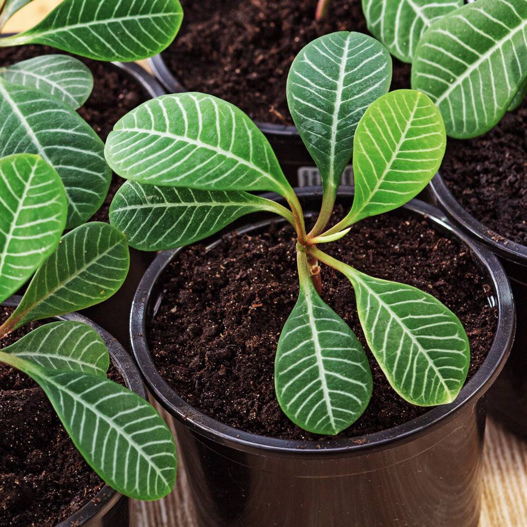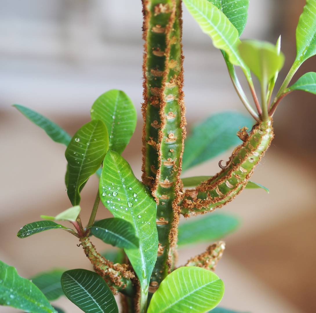 Skvättiväg är en lättskött krukväxt som fått sitt namn genom att den skvätter iväg frön för att föröka sig. Den får en tjock grön stam som är fyr- eller femkantig. De stora, läderartade bladen är mörkgröna. Tänk på att mjölksaften kan irritera huden så det är bra att använda handskar när du hanterar växten.