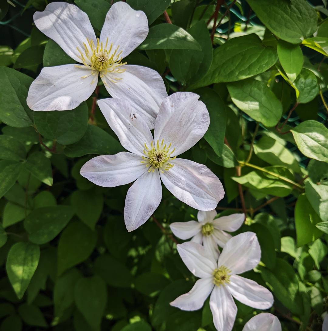 Klematisens rotsystem trivs i skugga men de gillar att slingra sig upp i soligare lägen. Det är därför perfekt att samplantera med marktäckande växter som perenner.